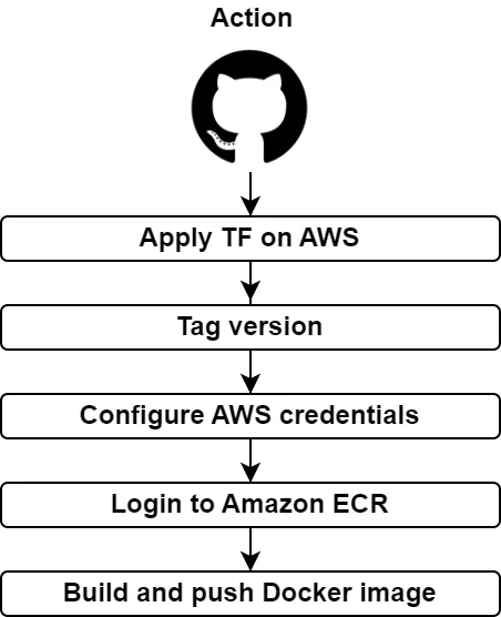 ./iac. Esta carpeta contiene todo nuestro código de Terraform que creará, junto con otros recursos, nuestro repositorio privado de ECR.El segundo job depende de la ejecución del job de Terraform. Paso a paso, esto es lo que hace:
